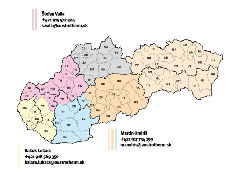 Potrebujete poradiť pri výbere tepelnoizolačných výrobkov značky Austrotherm alebo s postupom zateplenia? Kontaktujte nášho regionálneho zástupcu, ktorý Vám poradí a vypracuje cenovú ponuku na mieru.Výrobky Austrotherm si následne zakúpite u našich zmluvných partnerov.